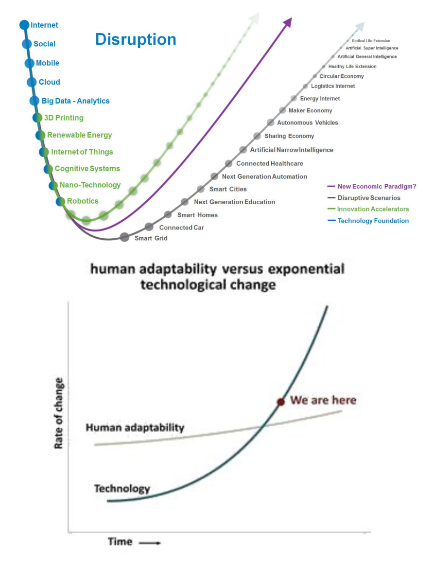 These following charts illustrate the social disruption of this accelerated growth and the relationship between human adaptation and technological change.
